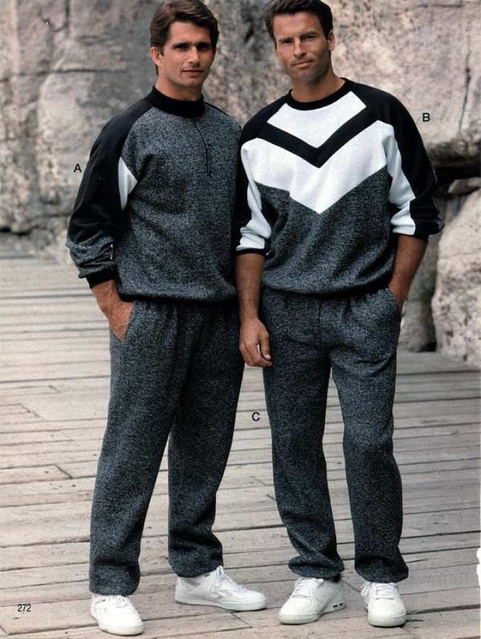 - Οι γνώστες της άνεσης φορούσαν αθλητικές φόρμες. Οι παραλλαγές με γεωμετρικά μοτίβα ήταν ιδιαίτερα δημοφιλείς.