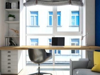 Η επιφάνεια εργασίας πρέπει να τοποθετηθεί πιο κοντά στο παράθυρο. Αυτό θα είναι ευεργετικό για την όρασή σας και θα σας βοηθήσει να πληρώσετε λιγότερα χρήματα για ηλεκτρική ενέργεια. Το κύριο πράγμα είναι να μην καταστρέψετε τους σωλήνες ή τον εξοπλισμό θέρμανσης. Εάν χρειάζεστε ένα τραπέζι κοντά στον καναπέ, πάρτε ένα πτυσσόμενο τραπεζάκι σαλονιού από το ΙΚΕΑ. Είναι φθηνό και συμπαγές.