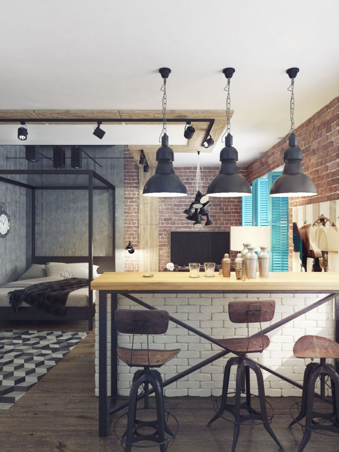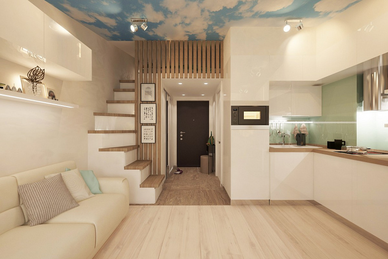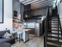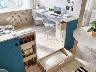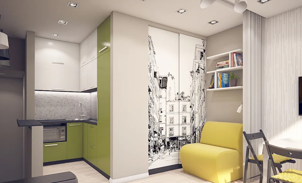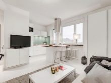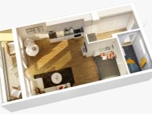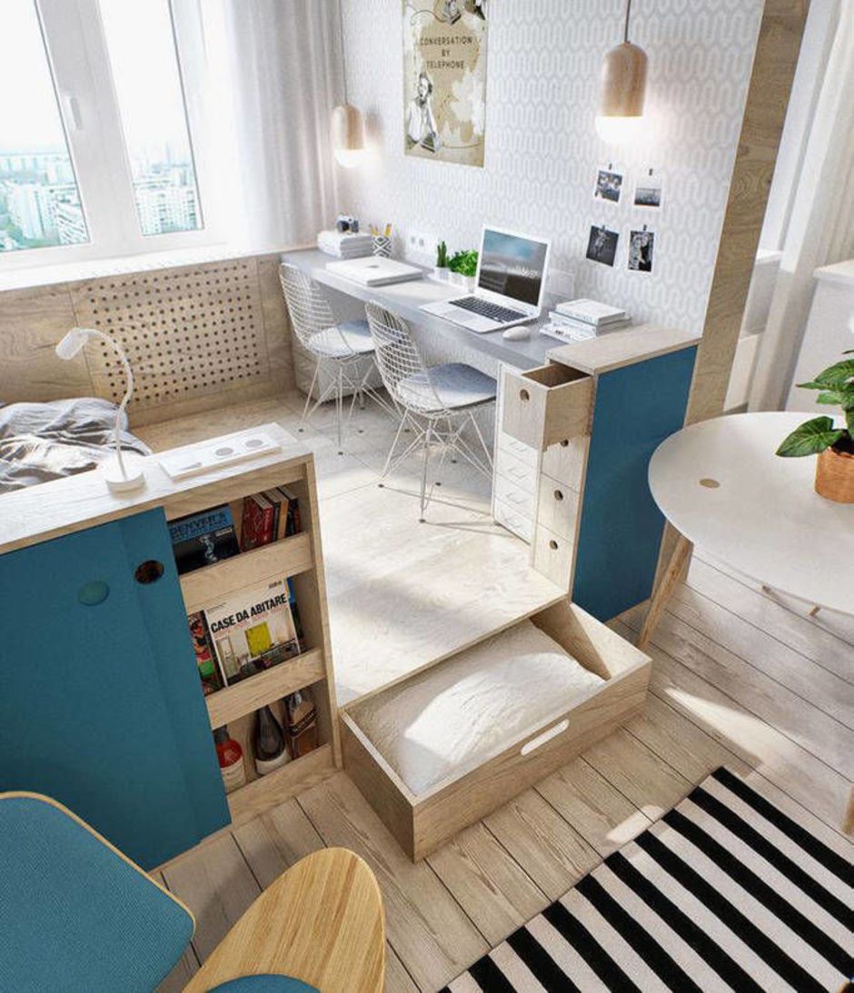 Η δημιουργία ενός διαμερίσματος στούντιο δεν είναι εύκολη υπόθεση, αλλά ακόμη και εδώ, οι σχεδιαστές μπορούν να δώσουν στους αρχάριους μερικές συμβουλές. Τα περισσότερα έπιπλα πρέπει να είναι εργονομικά. Οι καλύτερες επιλογές θα είναι πτυσσόμενα τραπέζια και καρέκλες με λεπτά πόδια, κινητοί καναπέδες που διπλώνουν σε κρεβάτι, πάγκοι μπαρ που μετατρέπουν την κουζίνα σε τραπεζαρία, συστήματα ραφιών και συρόμενες ντουλάπες που μπορούν κυριολεκτικά να «κοπούν» στον τοίχο ή βοηθούν στην επίτευξη πρόσθετης διαίρεσης του χώρου.