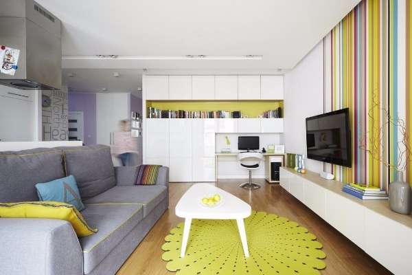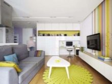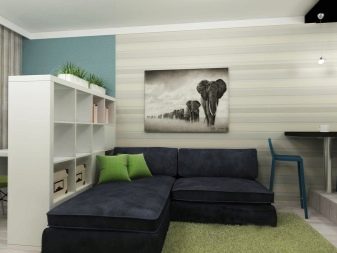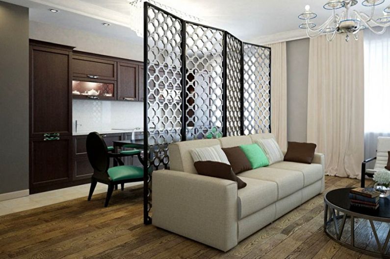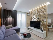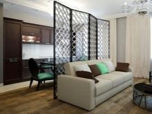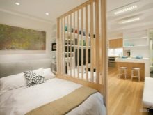 Τα χαμηλά χωρίσματα που εκτείνονται στη μέση του τοίχου μπορούν επίσης να είναι πολύ βολικά στη χρήση. Μπορούν απλά να χωρίσουν το διαμέρισμα σε ζώνες, ενώ βρίσκονται στο επίπεδο των επίπλων και δεν είναι πολύ εμφανή, και μπορούν επίσης να χρησιμεύσουν ως πρόσθετος χώρος αποθήκευσης εάν κάθε προεξοχή είναι εξοπλισμένο ως ράφι. Μια εξαιρετική επιλογή θα ήταν ημιδιαφανείς ή ανοιχτές οθόνες μέσω των οποίων μπορείτε να δείτε το υπόλοιπο δωμάτιο, αλλά εξακολουθούν να χωρίζουν το διαμέρισμα σε τομείς.