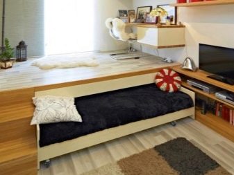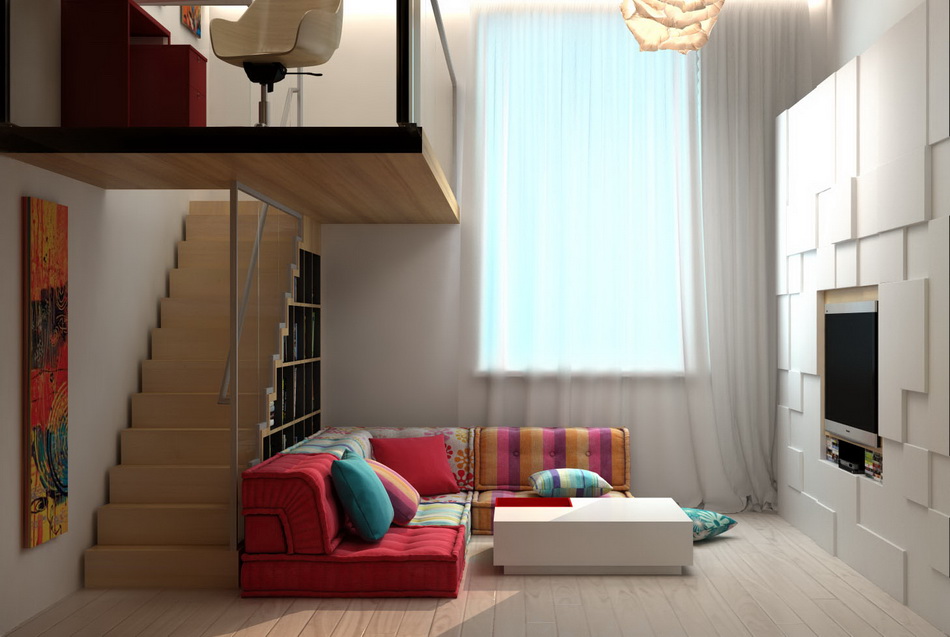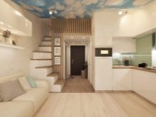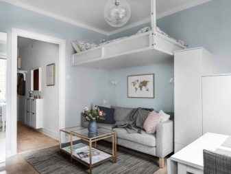 Ένα ψηλό ταβάνι, από 3,5 μέτρα και πάνω, είναι ένα δώρο για τους ανθρώπους που αποφασίζουν να αγοράσουν ένα μικρό διαμέρισμα. Πρώτα απ 'όλα, λύνει αυτόματα το πρόβλημα με την έλλειψη ελεύθερου αέρα στο δωμάτιο. Και επίσης είναι ιδανικό για τη δημιουργία ενός μίνι δαπέδου μέσα στο σπίτι. Πώς να το χρησιμοποιήσετε: ως ημιώροφο ή ως πρόσθετος χώρος για τη διευθέτηση κρεβατιού, γραφείου ή χώρου παιχνιδιού - επιλογή των ιδιοκτητών.