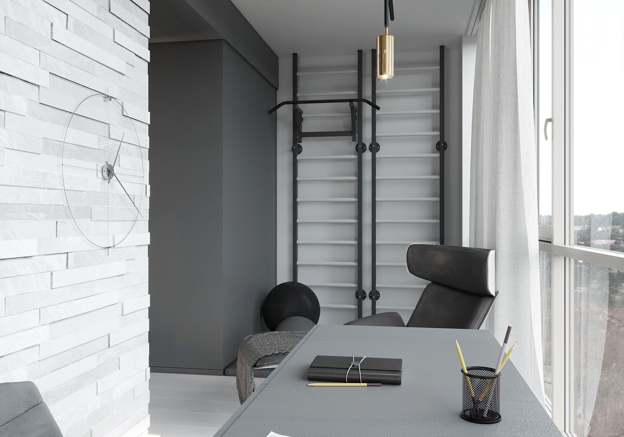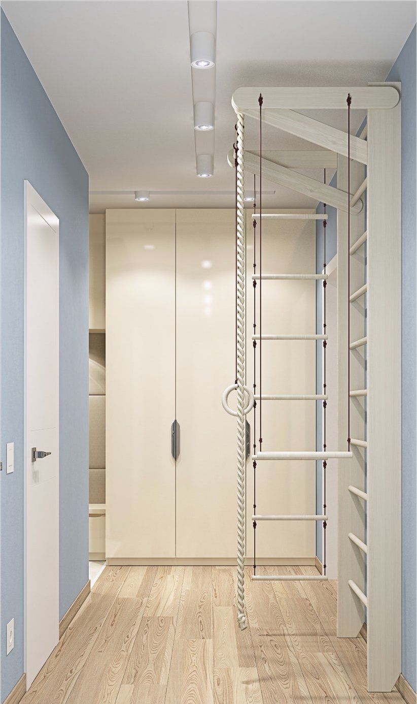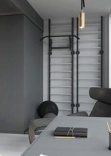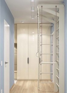 Για όσους θέλουν να διατηρήσουν τη φόρμα τους, ακόμα και να κάθονται στο σπίτι, μια οριζόντια μπάρα ή μπάρες τοίχου είναι μια καλή επιλογή. Ένα τέτοιο στοιχείο μπορεί εύκολα να εισαχθεί σε ένα μοντέρνο εσωτερικό, και επίσης, εάν δεν υπάρχει αρκετός χώρος στο ντουλάπι, μπορεί να χρησιμοποιηθεί ως πρόσθετος χώρος αποθήκευσης για ρούχα (φυσικά, αυτό είναι ένα αστείο).