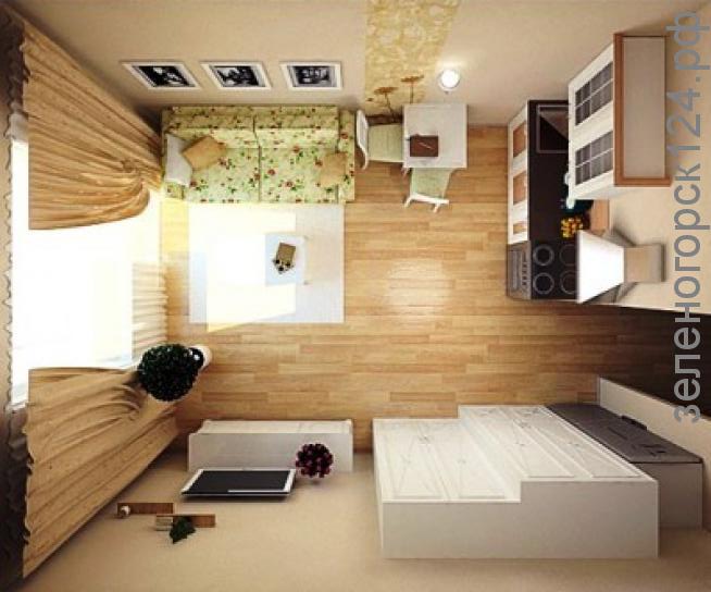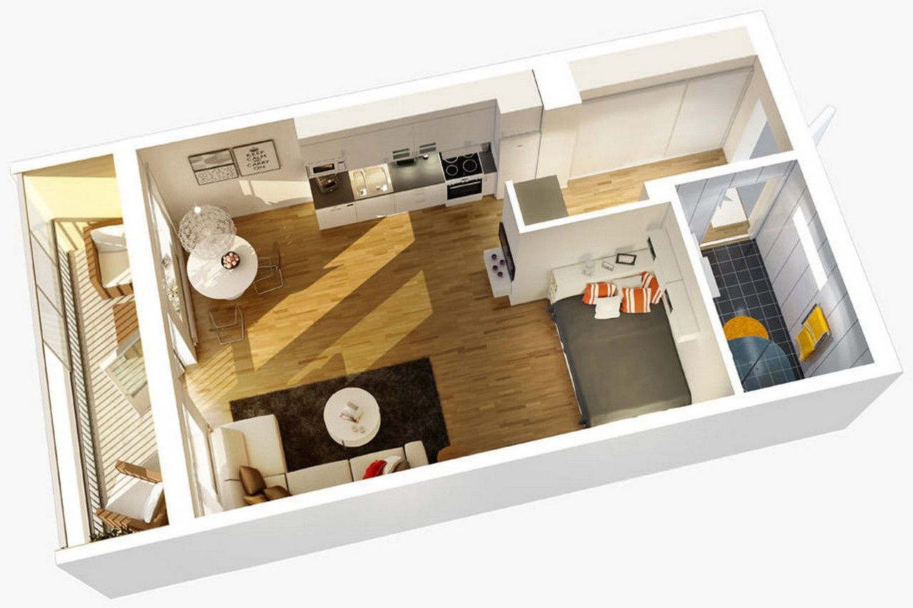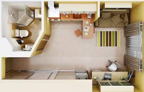 Για ένα μικρό διαμέρισμα στούντιο, η παραδοσιακή διάταξη είναι ένα μακρόστενο ορθογώνιο δωμάτιο με μια πόρτα εισόδου στο ένα άκρο και ένα παράθυρο κυριολεκτικά απέναντί του. Η δημιουργία ενός σχεδίου σχεδιασμού για ένα τέτοιο δωμάτιο είναι σχεδόν πάντα κακή δουλειά.: η απουσία πρόσθετων γωνιών, χωρισμάτων, συσπάσεων και επεκτάσεων μετατρέπει ένα υποθετικά παραδεισένιο μέρος σε ένα βαρετό περίβλημα που μόνο οι τελειομανείς-μινιμαλιστές και οι λάτρεις της γεωμετρίας θα ερωτευτούν.