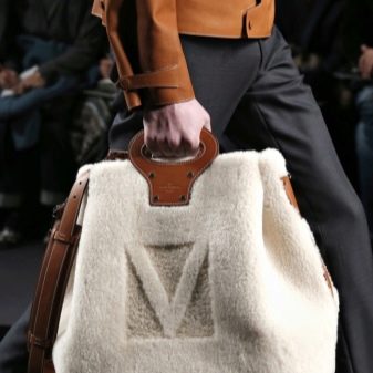 - Η τελευταία ματιά της μόδας - κομψές ανδρικές τσάντες από φυσική ή τεχνητή γούνα... Το προϊόν μπορεί να είναι εντελώς κατασκευασμένο από γούνα ή μεμονωμένα μέρη του σε συνδυασμό με σουέτ, δέρμα και άλλα υλικά. Η ανδρική έκδοση του προϊόντος έχει αυστηρό ορθογώνιο ή τετράγωνο σχήμα, τουλάχιστον αξεσουάρ.