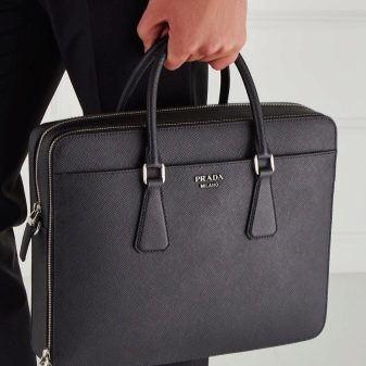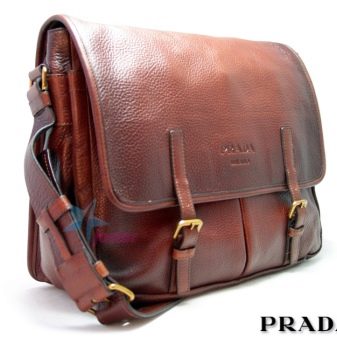 - Η περίφημη Prada προσφέρει στον καταναλωτή μια μεγάλη ποικιλία από τσάντες για άνδρες, από μικρά clutches έως μεγάλα ταξιδιωτικά ή αθλητικά μοντέλα. Ιδιαίτερη έμφαση δίνεται στις τσάντες φακέλων από γνήσιο δέρμα, πορτοφόλια, πορτοφόλια. Η υφή των προϊόντων είναι λεία. Υλικό - γνήσιο δέρμα, δέρμα python, κροκόδειλος σε διάφορα χρώματα.