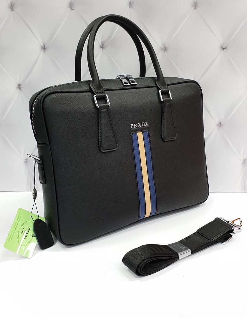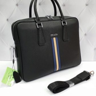 - Χαρτοφύλακας. Ένα αυστηρό μοντέλο, σχετικό για ένα επιχειρηματικό στυλ. Οι δερμάτινοι χαρτοφύλακες Prada έχουν κομψά, ασυνήθιστα χρώματα και λακωνικό σχεδιασμό. Συνδυάζονται ιδανικά με επαγγελματικό κοστούμι και κλασικά παπούτσια. Και επίσης σε αρμονία με ακριβά ρολόγια και γυαλιά ηλίου.