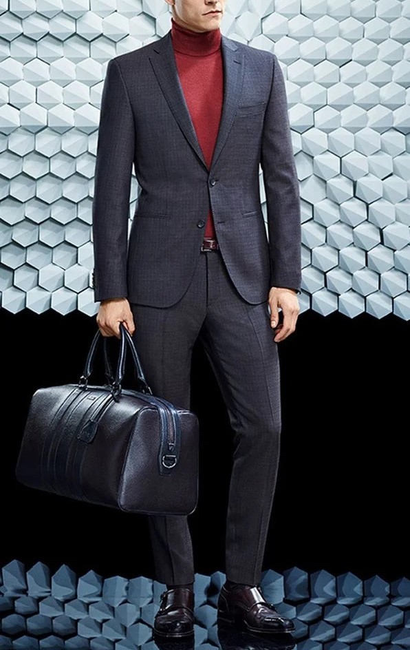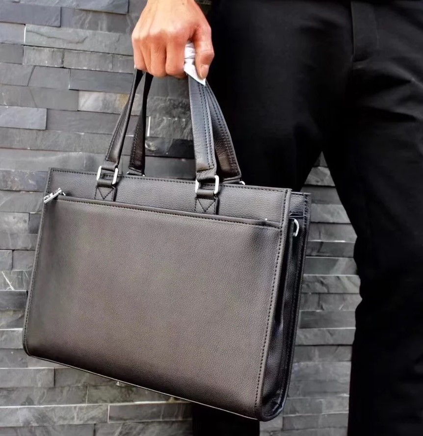 - μια ογκώδη δερμάτινη τσάντα και ένα κλασικό κοστούμι σε σκούρα απόχρωση.