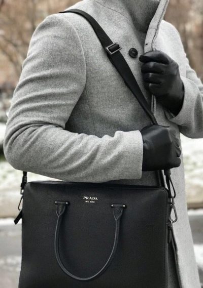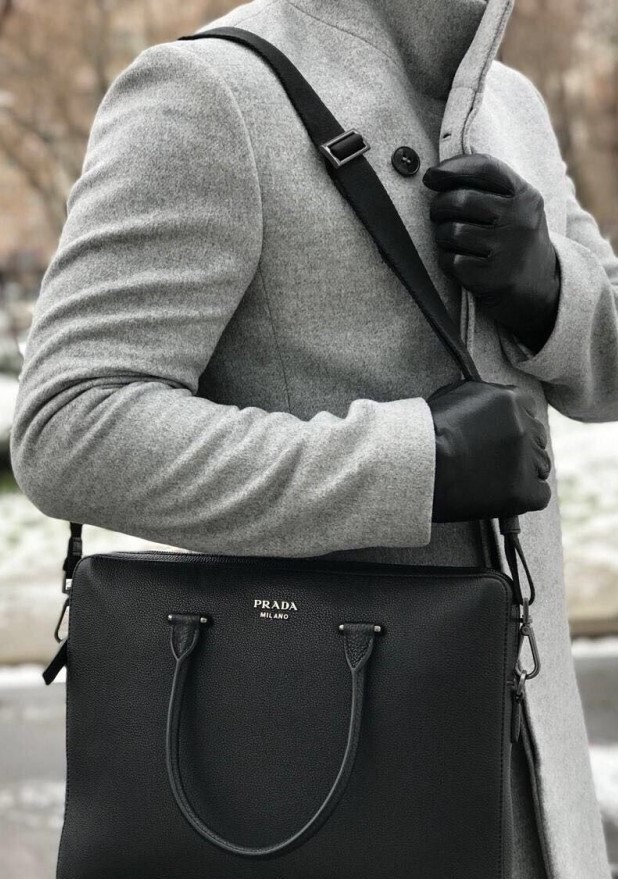 Οι αντρικές τσάντες Prada ταιριάζουν με δερμάτινα γάντια, ομπρέλες από καλάμι και κοσμήματα. Όσο για τα παπούτσια, πρέπει επίσης να είναι άψογα και ακριβά.