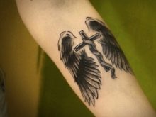 - Εάν ο σταυρός γίνεται παράλληλα με τα φτερά, ένας τέτοιος συνδυασμός θα γίνει η ενσάρκωση της πνευματικότητας και της αγνότητας.