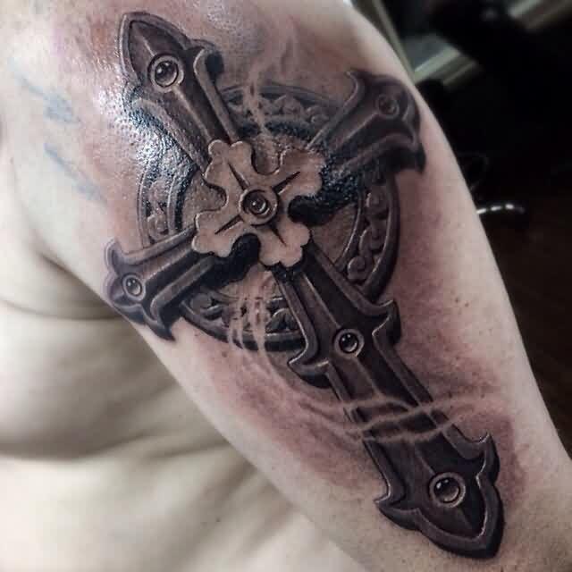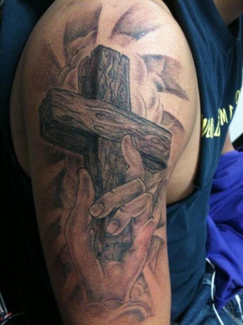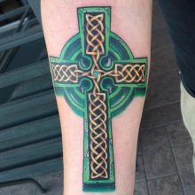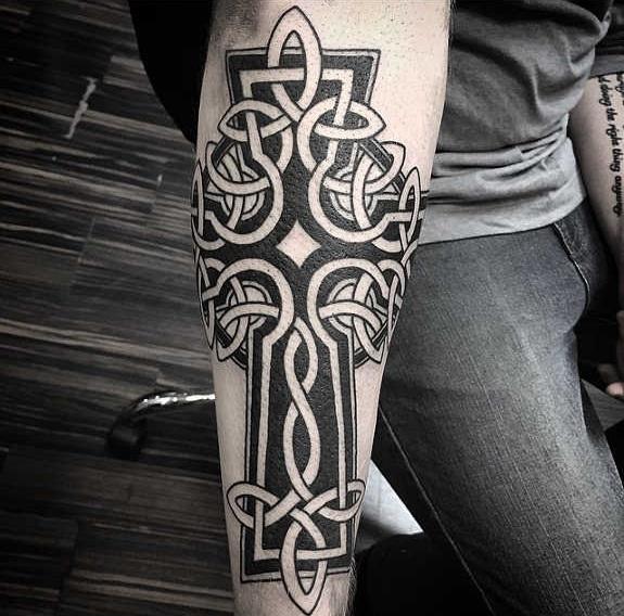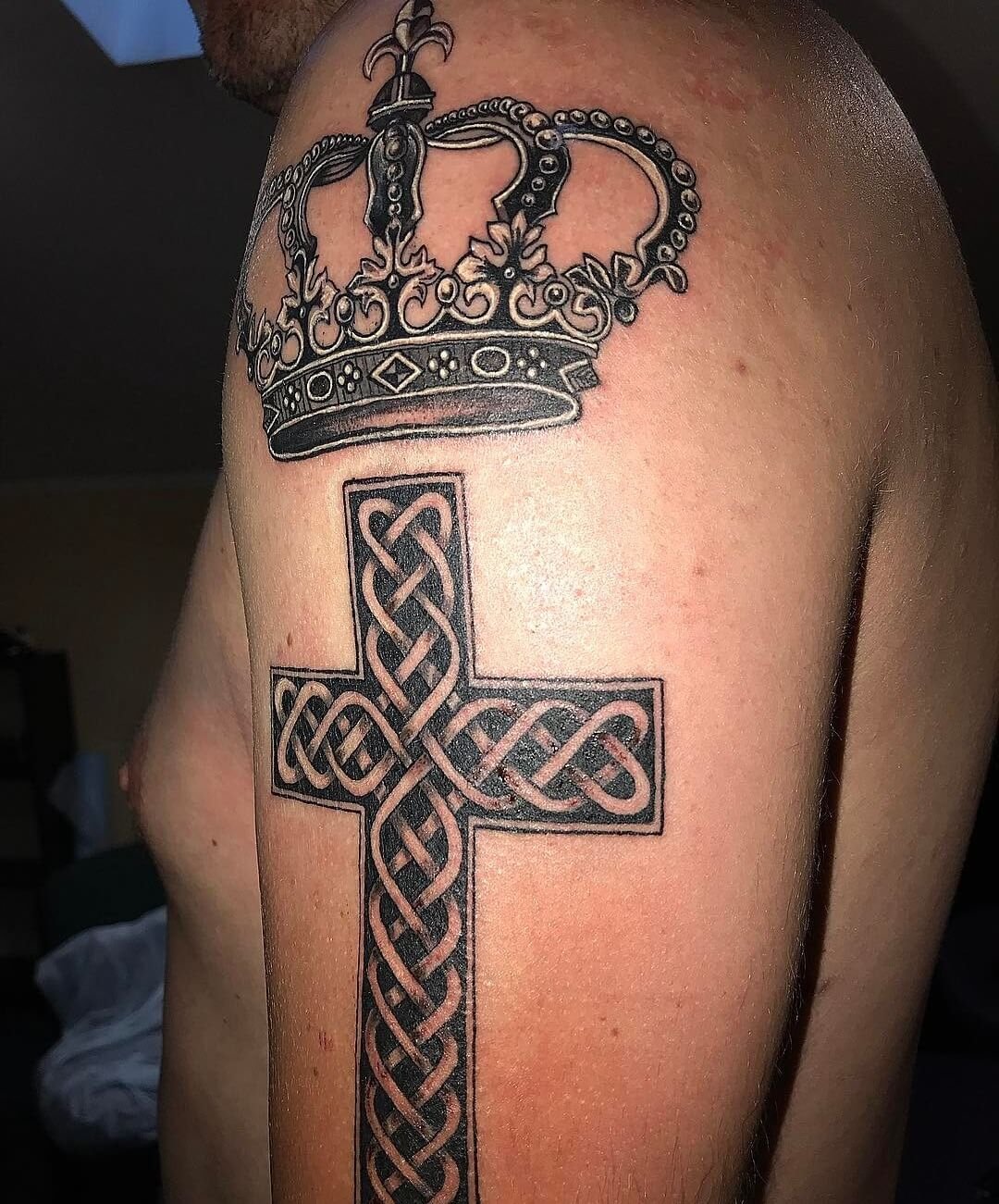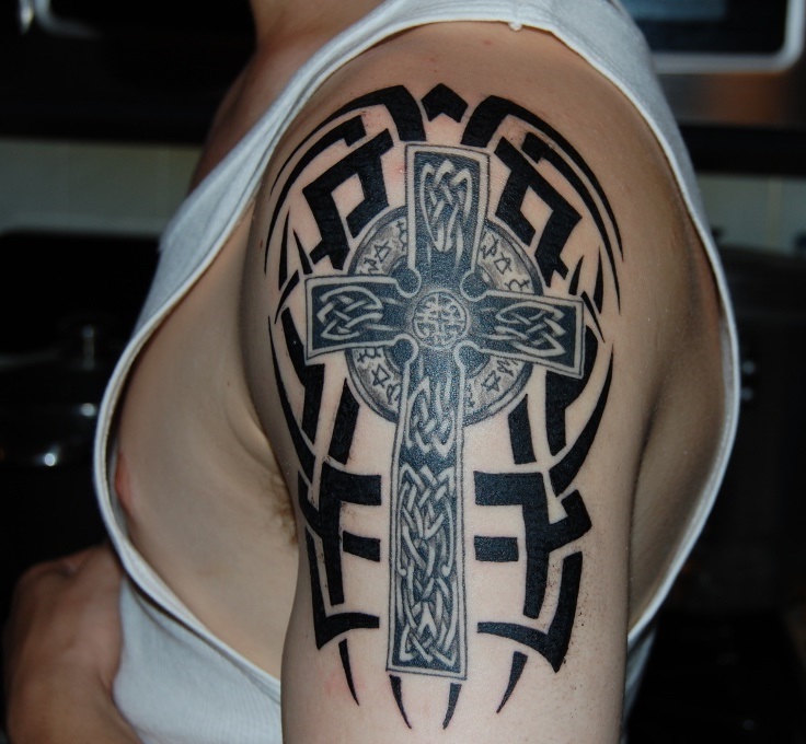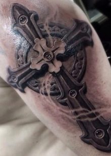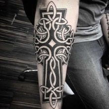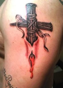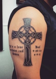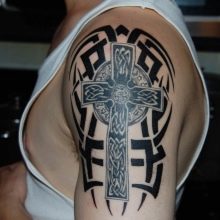 - Στον ώμο. Συνήθως ένας κελτικός σταυρός απεικονίζεται σε αυτό το μέρος του χεριού, η παρουσία του συμβολίζει ότι ο ιδιοκτήτης του σκέφτεται το μέλλον και επίσης σκέφτεται το αιώνιο. Άλλες εκδοχές του σταυρού σπάνια απεικονίζονται εδώ, καθώς είναι δυνατό ένα ριζικά διαφορετικό αποτέλεσμα - το σύμβολο μπορεί να προσελκύσει δυσκολίες και διαφορές.