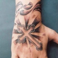 Όπως γνωρίζετε, ο σταυρός είναι ένα μοιραίο σημάδι που σχετίζεται με αιώνιες έννοιες: προφήτες και άγιοι, πίστη και δύναμη, θάνατος και ζωή κ.ο.κ. Συνήθως, η πίστη ή η έλλειψή της είναι προσωπική επιλογή, επομένως το σύμβολο του σταυρού έχει διαφορετικές ερμηνείες. Εάν ένας άντρας αποφασίσει να διακοσμήσει το χέρι του με τατουάζ σε σχήμα σταυρού, τότε θέλει να τονίσει τις απόψεις, τις πεποιθήσεις και τη γενική του άποψη.
