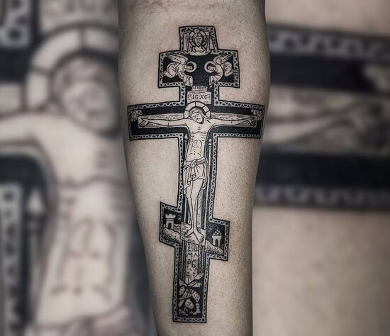 - ορθόδοξος - συνήθως ένας τέτοιος σταυρός απεικονίζεται μαζί με τον Ιησού Χριστό, αφού συμβολίζει τον θάνατό του.