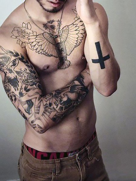 Γενικά, ο σταυρός σχετίζεται κυρίως με τον Χριστιανισμό, αν και ένα τέτοιο σχέδιο μπορεί να υποδεικνύει άλλες θρησκείες. Συνήθως, άνδρες της ορθόδοξης πίστης απεικονίζουν επίσης τον Χριστό, καθώς και άλλους αγίους, μαζί με το σταυρό. Μερικοί άνθρωποι, αντίθετα, έχοντας ξεπερασμένες αρχές, θεωρούν τέτοιες ενέργειες από αρνητική σκοπιά.