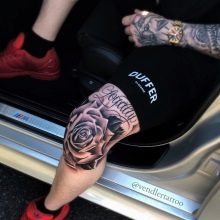 Πολύ συχνά, οι άνδρες τοποθετούν μια εικόνα ενός τριαντάφυλλου σε αυτό το μέρος. Τις περισσότερες φορές, ένα τέτοιο σχέδιο συμβολίζει την αγάπη, το πάθος και την αφοσίωση - αυτή είναι η παραδοσιακή ερμηνεία αυτής της εικόνας. Ωστόσο, εάν ένα λουλούδι σε ένα τατουάζ έχει μεγάλο αριθμό αγκάθια, τότε ένα τέτοιο μοτίβο αποκτά διαφορετική σημασία: σημαίνει δύσκολη αγάπη που βλάπτει πολύ ένα άτομο και την ψυχή του, του φέρνει ταλαιπωρία.