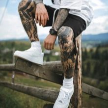 Τα σχέδια στα γόνατα φαίνονται πολύ ενδιαφέροντα, βοηθώντας να τονιστεί η πρωτοτυπία του ιδιοκτήτη τους, καθώς και να γίνει η εικόνα του πιο εντυπωσιακή και ζωντανή, κάτι που είναι ιδιαίτερα κατάλληλο για εκείνους τους ανθρώπους που επιθυμούν να προσελκύσουν την προσοχή από έξω.