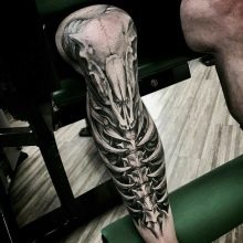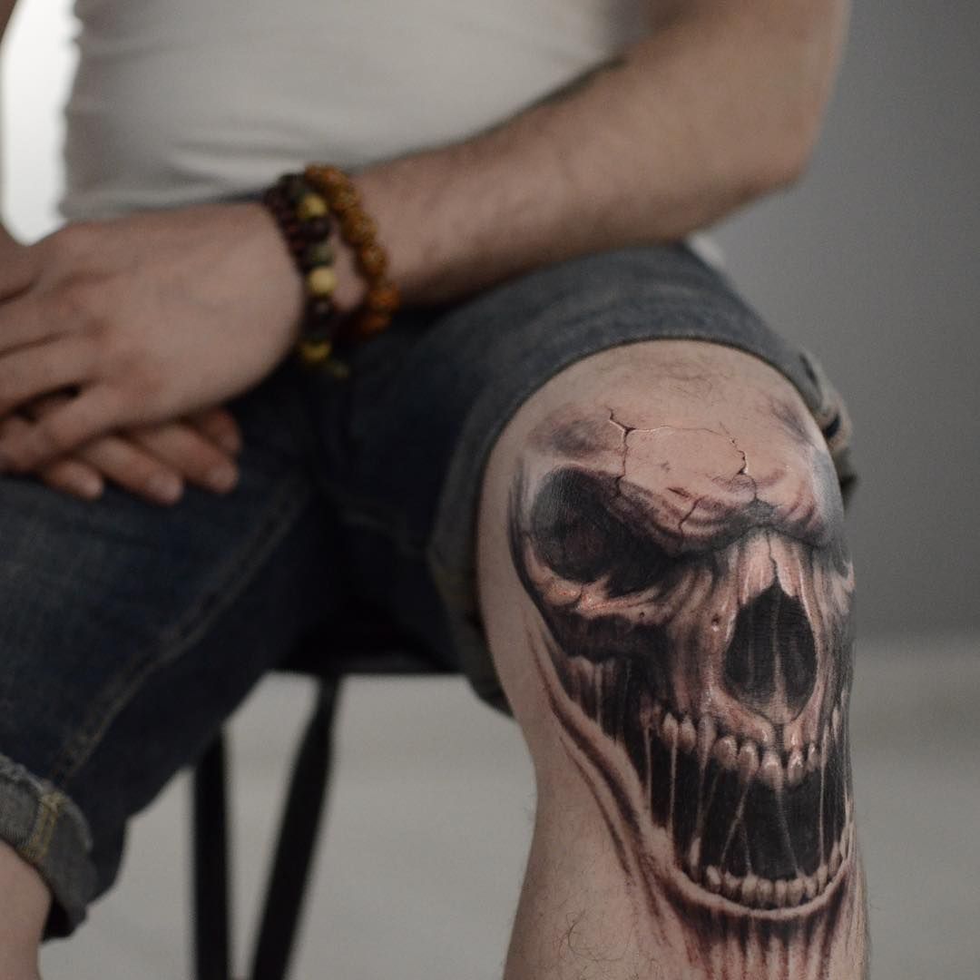Συχνά, οι άνδρες εφαρμόζουν εικόνες κρανίων στο γόνατο, το οποίο έχει επίσης μια ιδιαίτερη σημασία. Συχνά, για πολλούς, ένα τέτοιο σχέδιο σχετίζεται με θάνατο και σκοτεινές δυνάμεις, κάτι που δεν είναι απολύτως σωστό. Συνήθως, ένα κρανίο σε ένα τατουάζ δείχνει ότι ο ιδιοκτήτης του είναι προικισμένος με ατρόμητο.