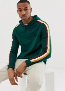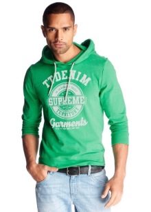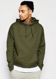 - Πράσινος - λιγότερο δημοφιλές χρώμα στη δημιουργία φούτερ. Τις περισσότερες φορές στην πώληση μπορείτε να βρείτε ανδρικά ρούχα σε πράσινες αποχρώσεις, κοντά σε χακί ή βάλτο - όλες οι γκρι και καφέ -πράσινες αποχρώσεις μπορούν να αποδοθούν εδώ. Δεν θα βρείτε μπλουζάκια σε ανοιχτό πράσινο ή σμαραγδένιο χρώμα σε ένα ανδρικό τόξο - αυτές οι αποχρώσεις ταιριάζουν με τίποτα. Είναι καλύτερο να επιλέξετε ένα μπεζ, γκρι ή σκούρο μπλε πάτο για ένα χακί φούτερ.