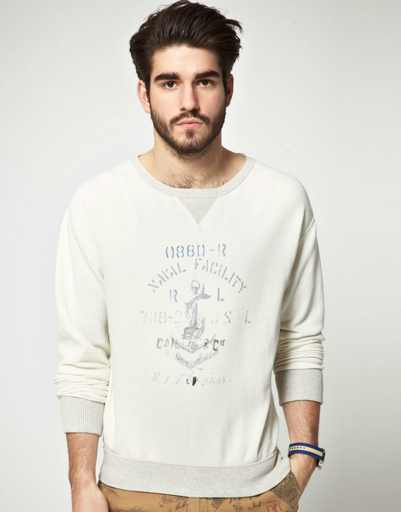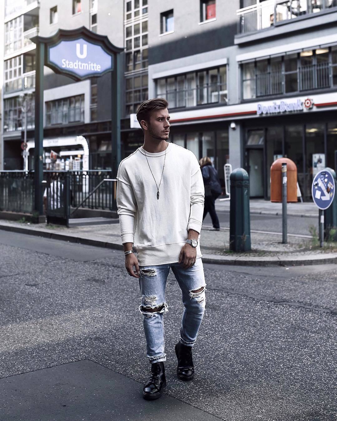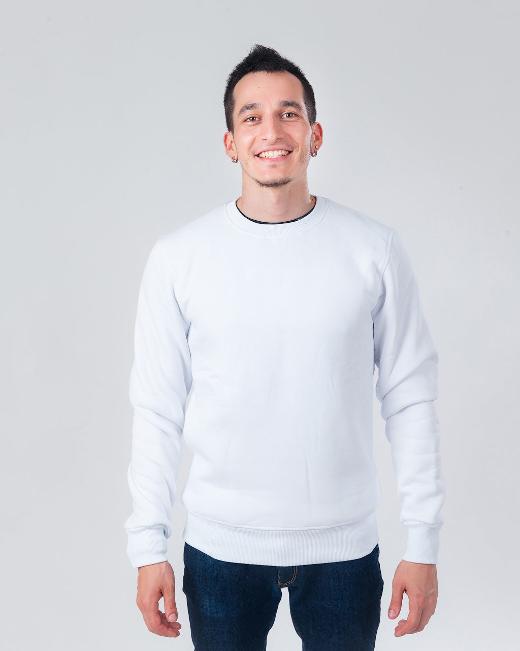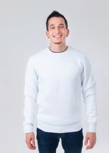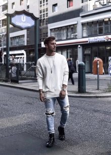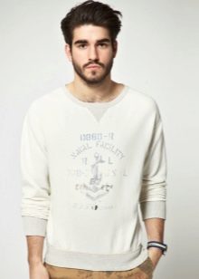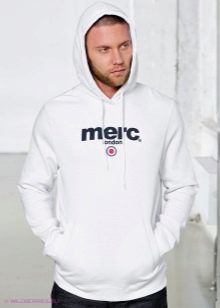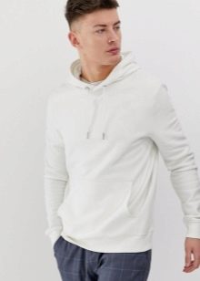 - Λευκό. Όχι το πιο πρακτικό όσον αφορά τη φροντίδα, αλλά απίστευτα κομψό και αποτελεσματικό χρώμα για ένα ανδρικό φούτερ. Τα ρούχα με λευκά λουλούδια φοριούνται συνήθως αποκλειστικά για εκδηλώσεις το Σαββατοκύριακο - σε απλό στυλ, πολύ σύντομα θα χάσουν την ελκυστική τους εμφάνιση. Όταν επιλέγετε ένα κάτω μέρος για ένα λευκό φούτερ, μπορείτε να πάτε με δύο τρόπους. Για μια πιο εκφραστική και αντίθεση εμφάνιση, είναι προτιμότερο να επιλέξετε μαύρο, ναυτικό ή σκούρο γκρι παντελόνι. Για να κάνετε την εμφάνιση πιο απαλή, θα πρέπει να επιλέξετε ανδρικό παντελόνι σε κρεμ, σιτάρι ή ανοιχτό γκρι αποχρώσεις.