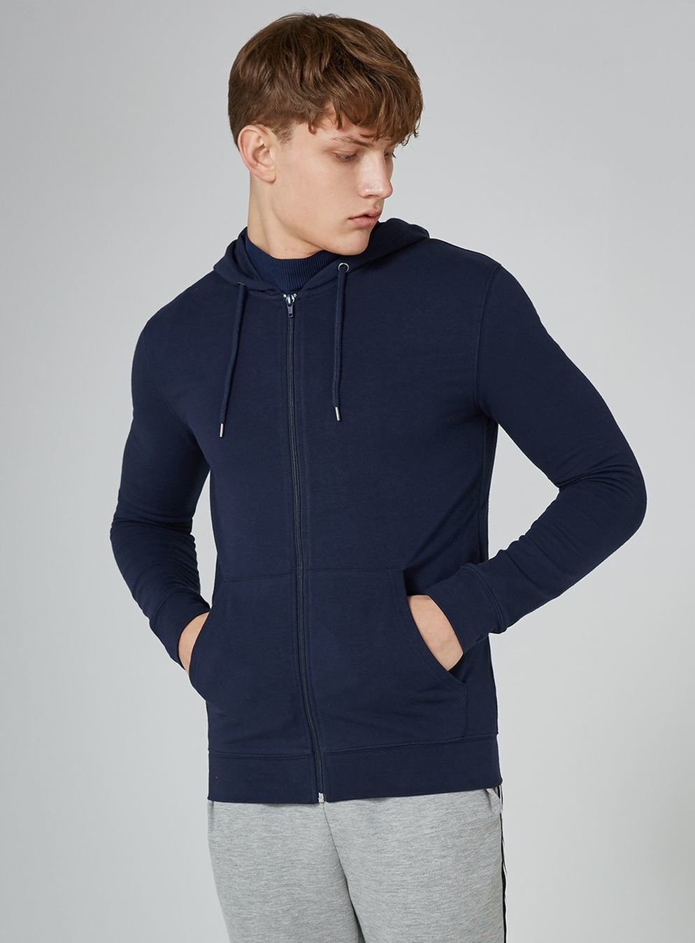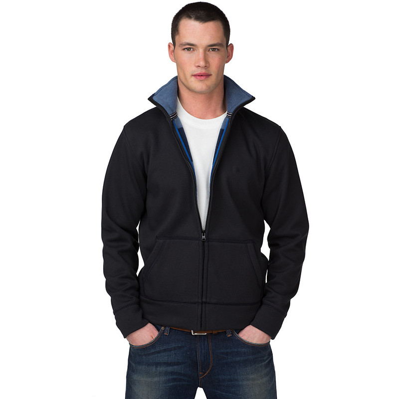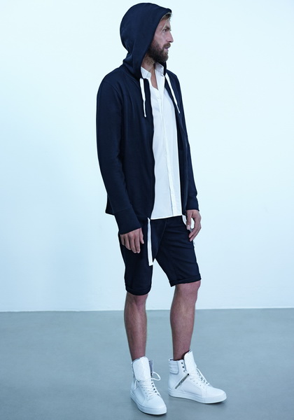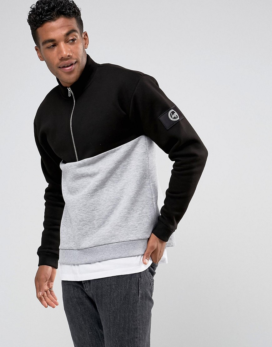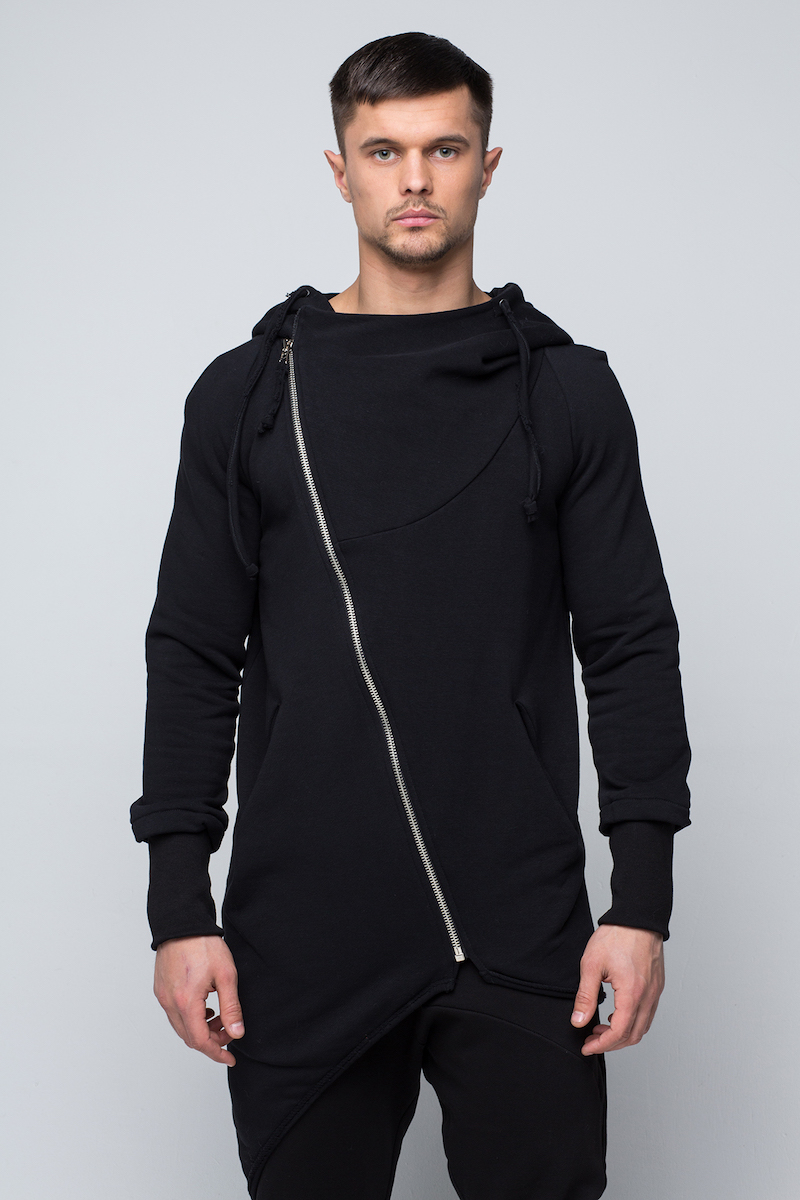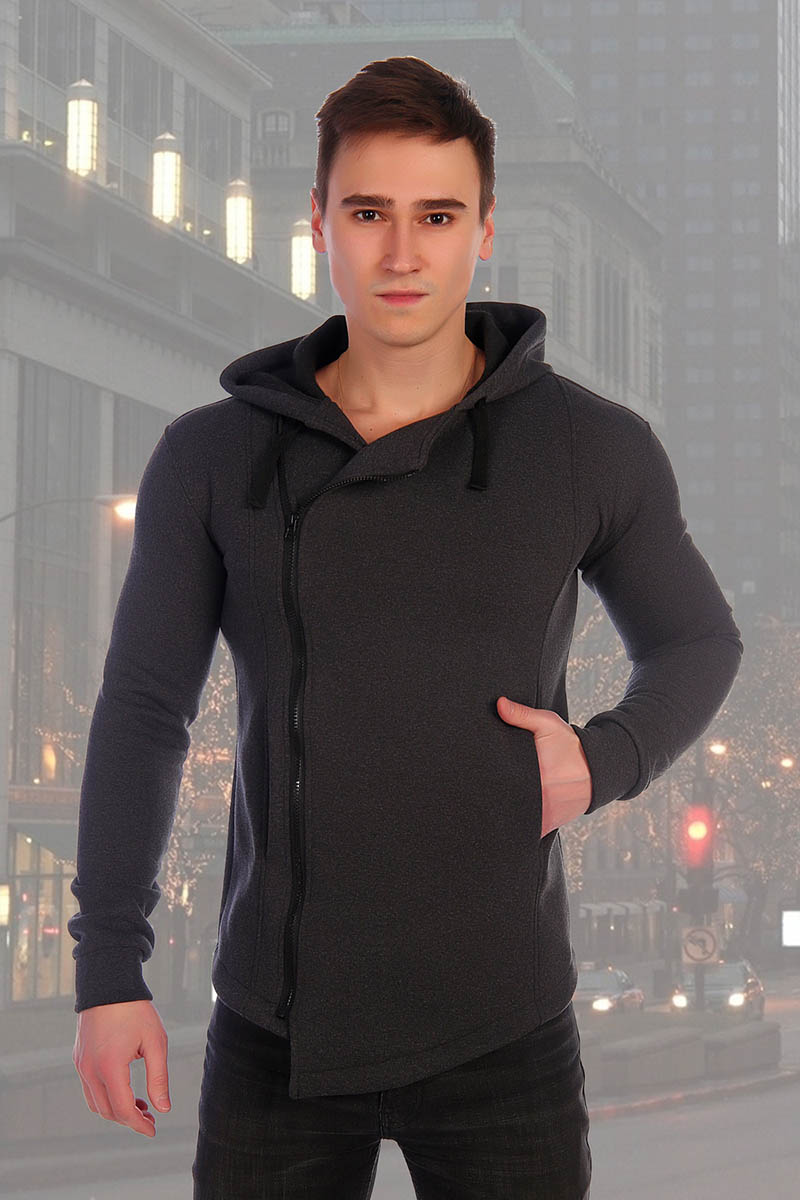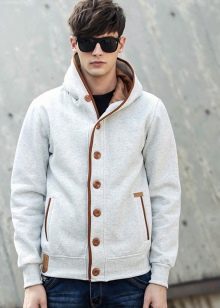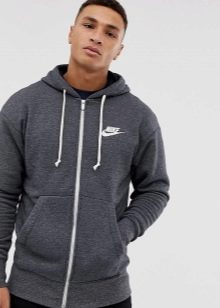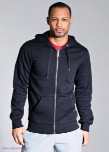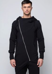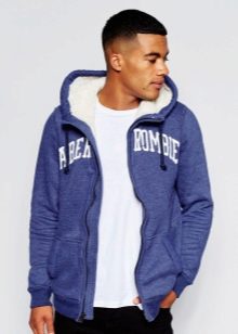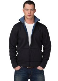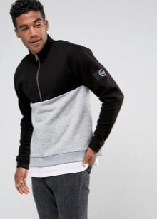 - Με φερμουάρ. Σε αυτή την περίπτωση, το φερμουάρ μπορεί να βρίσκεται σε όλο το κατακόρυφο μήκος του φούτερ και να φτάνει στο στέρνο. Οι άντρες προτιμούν να φορούν ενδιαφέροντα πουκάμισα για τέτοια μοντέλα να εστιάζουν στο γιακά. Ένα σημαντικό στοιχείο αυτών των φούτερ είναι η υποχρεωτική απουσία κουκούλας.