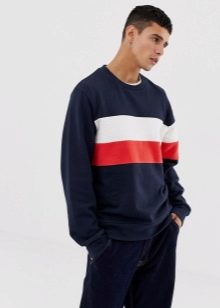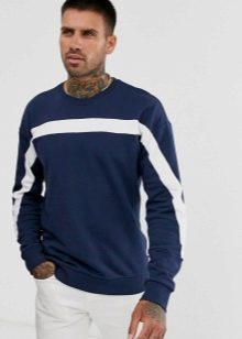 - Μπλε χρώμα - όχι λιγότερο δημοφιλής σκιά κατά τη δημιουργία ανδρικών ρούχων. Το μπλε δεν φαίνεται τόσο αυστηρό και ζοφερό όσο το μαύρο, και δίνει επίσης ένα τόξο φρεσκάδας και κομψότητας σε έναν άντρα. Φούτερ σε ανοιχτό μπλε, κοβάλτιο και γαλάζιο χρώματα είναι ιδιαίτερα δημοφιλή σήμερα. Ένα μπλε φούτερ θα φανεί καλύτερα με τυπικά ανδρικά τζιν ή μπεζ παντελόνια. Σε αυτή την περίπτωση, υπάρχει επίσης μια πιθανότητα να δημιουργήσετε μια ζοφερή εικόνα και επομένως προσπαθήστε να επιλέξετε χρώματα που θα δημιουργήσουν μια ευχάριστη αντίθεση στο μάτι.