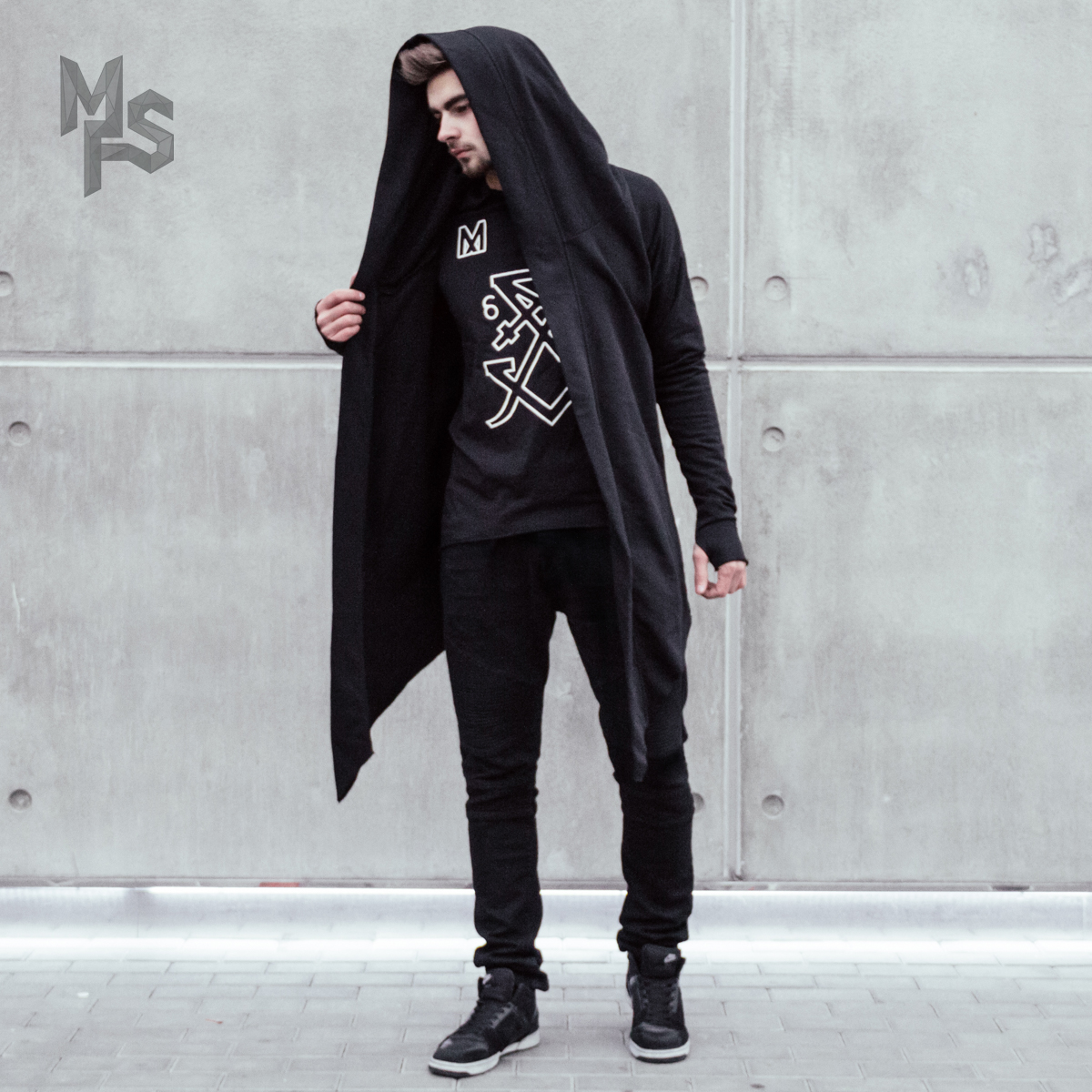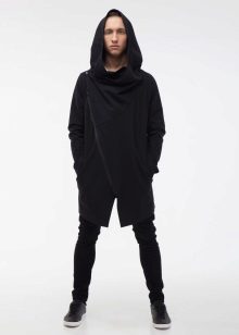 - Φούτερ-μανδύας. Αυτά τα μπλουζάκια ανήκουν σε μη τυποποιημένα στυλ. Έχουν αυξημένο και συχνότερα ασύμμετρο μήκος, καθώς και φαρδιά κουκούλα. Αυτοί οι τύποι ρούχων είναι συνήθως κατασκευασμένοι από λεπτά υλικά και προορίζονται αποκλειστικά για δημοσίευση.