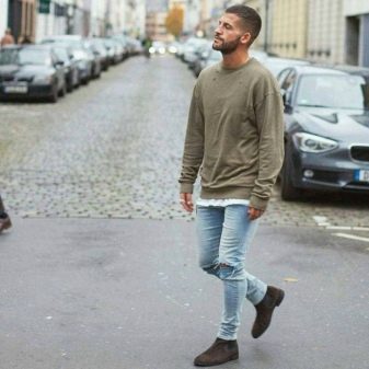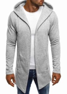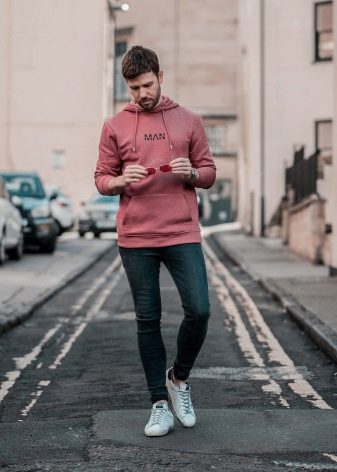 - Άνδρες που επέλεξαν όχι πολύ τυπικά κουκούλες όπως ρόμπες ή μπλούζες, πρέπει να σκεφτείτε να συμπεριλάβετε στο φιόγκο σας τζιν με ίσιο ή στενό παντελόνι. Όταν επιλέγετε παπούτσια, συνιστάται να λάβετε υπόψη τις επιλογές για μοκασίνια ή πάνινα παπούτσια.