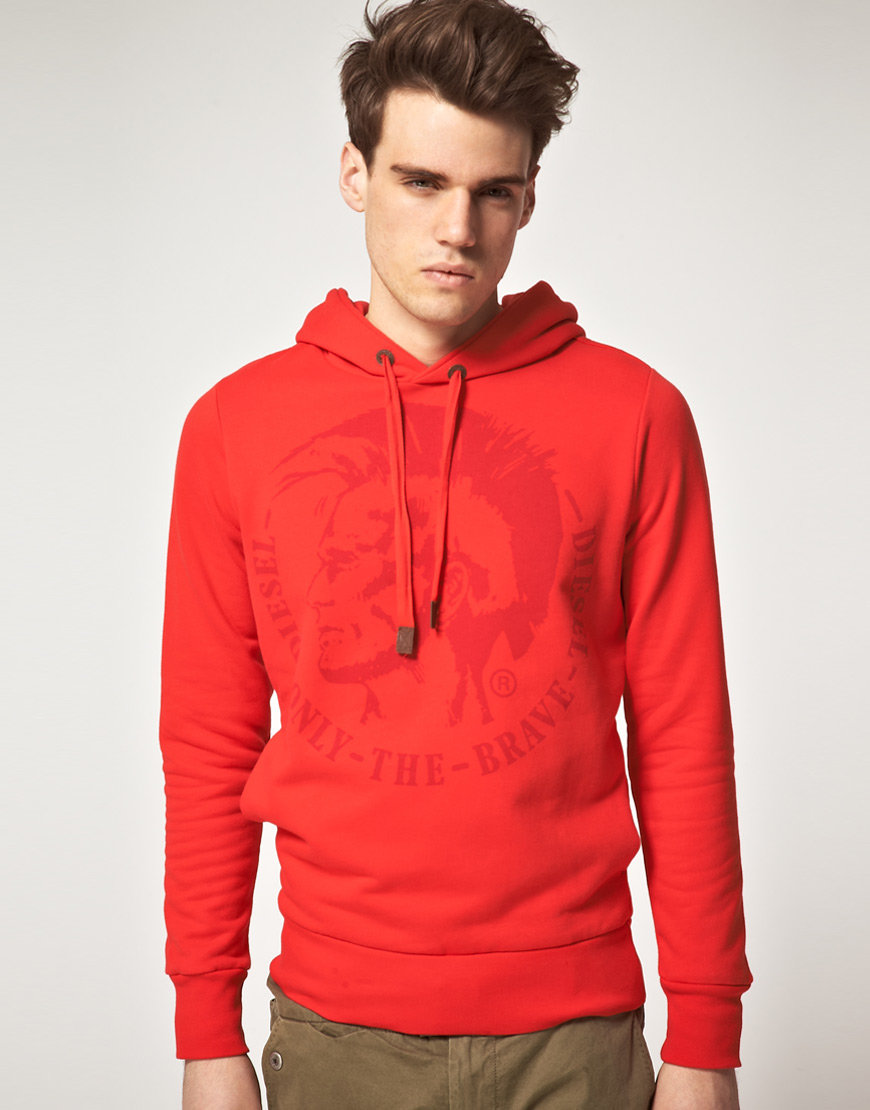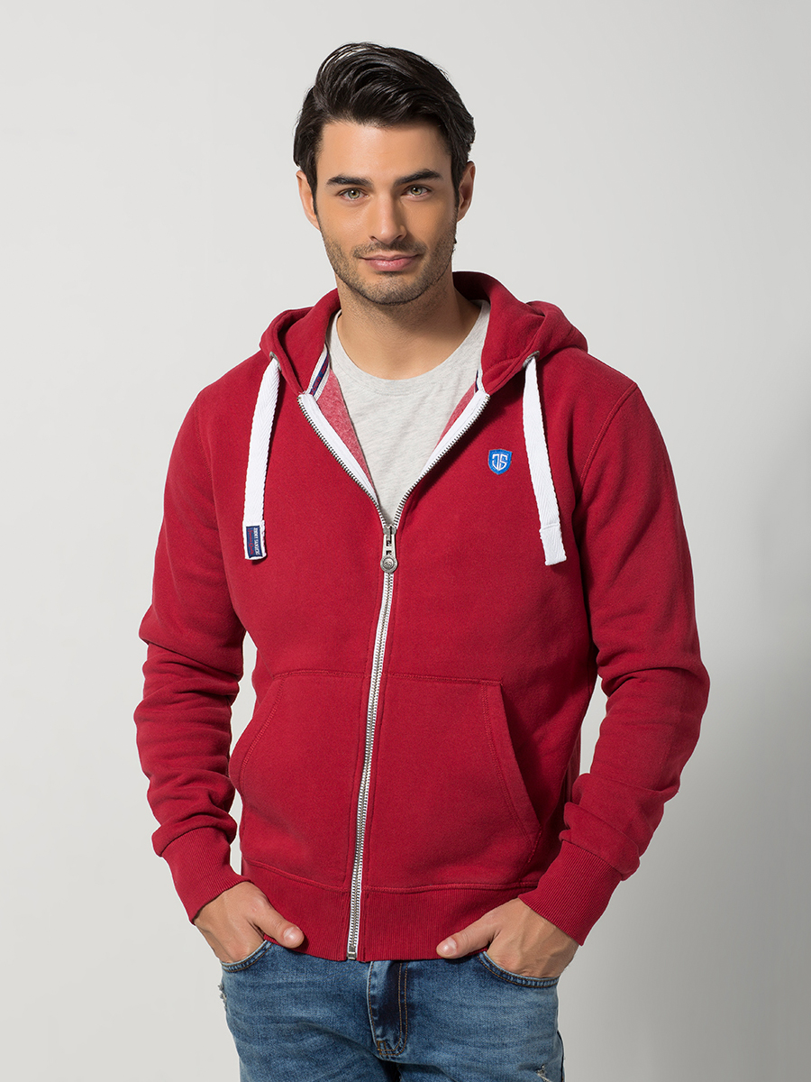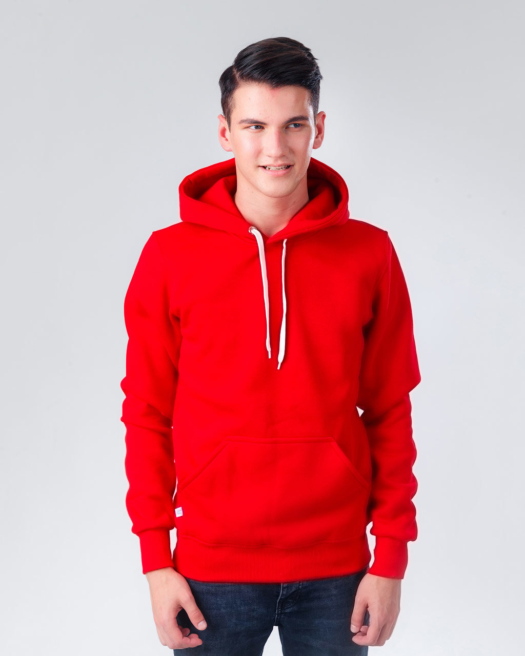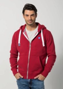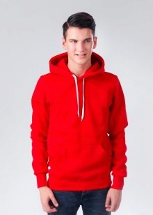 - Το κόκκινο και οι αποχρώσεις του. Το κόκκινο είναι ιδανικό για να προσελκύσει την προσοχή. Αυτό είναι το χρώμα των ηγετών και των ανδρών που είναι σίγουροι για τις ικανότητές τους. Φούτερ σε κόκκινα χρώματα είναι πιο κατάλληλα για έξοδο - για πάρτι, κλαμπ, ανεπίσημες δεξιώσεις. Παραλλαγές μπορντό, σκούρο κεράσι και κοραλλί αποχρώσεις φαίνονται ιδιαίτερα ενδιαφέρουσες και θεαματικές. Όταν επιλέγετε ένα κάτω μέρος για ένα κόκκινο φούτερ, πρέπει να εστιάσετε σε μαύρο ή λευκό παντελόνι (όταν βγαίνετε έξω) ή σε γκρι και μπλε παντελόνι (σε καθημερινό φιόγκο).