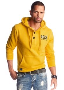 - Κίτρινος. Για πολλούς άντρες, ένα κίτρινο φούτερ είναι κάτι εντελώς απαράδεκτο - όλα λόγω της πολύ έντονης αντίθεσης που δημιουργεί αυτό το χρώμα με όλα τα υπόλοιπα ρούχα. Ανεξάρτητα από αυτό, μερικές αποχρώσεις του κίτρινου μπορούν να δημιουργήσουν πολύ δροσερές εμφανίσεις.