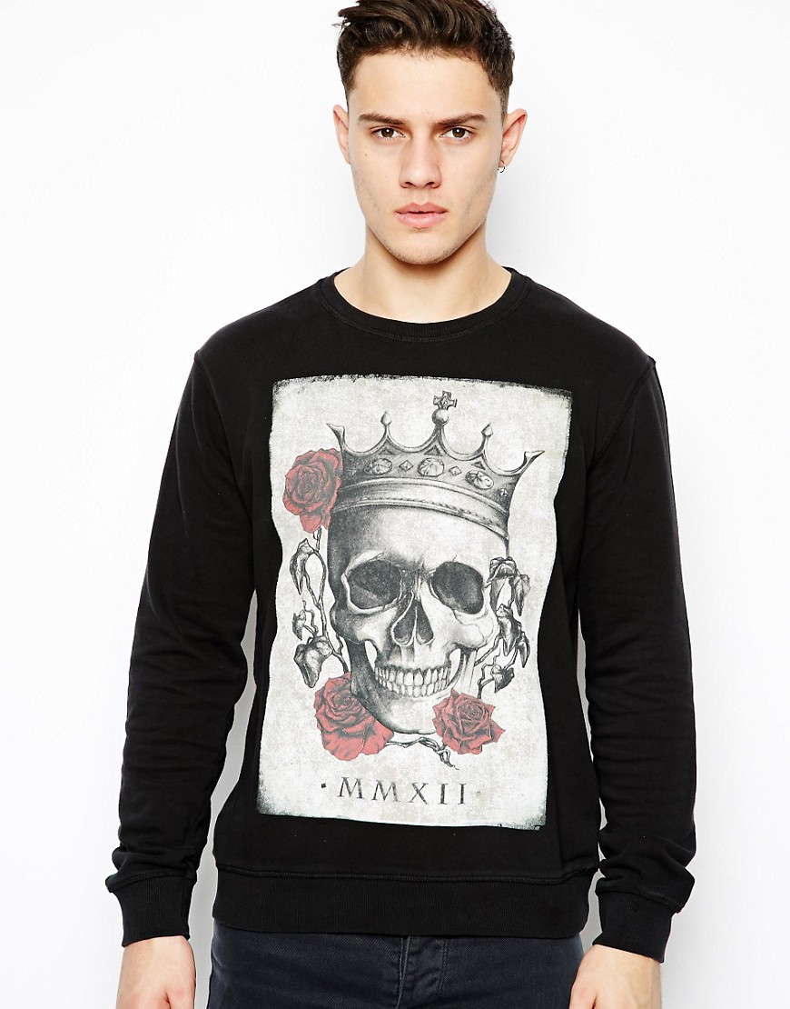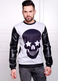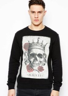 - Κωπή. Φούτερ με εκτύπωση κρανίου φοριούνται πλέον αποκλειστικά από τη νεότερη γενιά. Πρέπει να σημειωθεί ότι αυτό το στοιχείο σπάνια χρησιμοποιείται μεμονωμένα - για παράδειγμα, στοιχεία όπως τριαντάφυλλα, στέμμα ή γοτθικά μοτίβα προστίθενται συχνά στο κρανίο. Κάθε νεαρός άνδρας βάζει το δικό του νόημα σε μια τέτοια εκτύπωση, αλλά τις περισσότερες φορές το κρανίο εκτελεί ακριβώς το ρόλο του εκφοβισμού.
