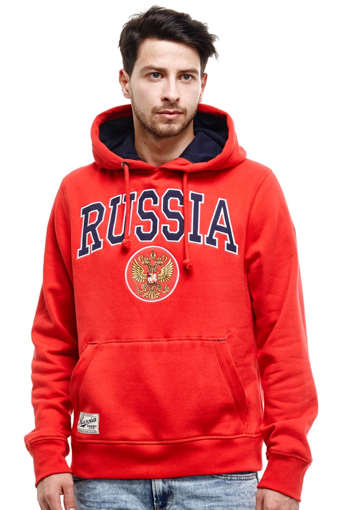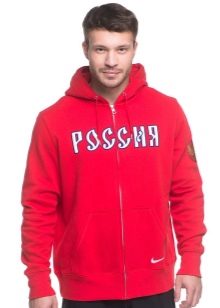 - Στυλ "Ρωσία". Σήμερα, οι κουκούλες σε αυτό το στυλ θεωρούνται εξαιρετικά δημοφιλείς. Το βασικό χαρακτηριστικό αυτής της εκτύπωσης είναι η χαρακτηριστική επιγραφή "Ρωσία" ή Ρωσία. Οι αποχρώσεις αυτών των φούτερ συνήθως ταιριάζουν με τα χρώματα της ρωσικής σημαίας. Ένα πρόσθετο στοιχείο σε τέτοια φούτερ μπορεί να είναι ένα σχέδιο ή μια λωρίδα του ρωσικού οικόσημου. Τέτοια μοντέλα φοριούνται συνήθως για βόλτες ή κατά τη διάρκεια αθλημάτων.