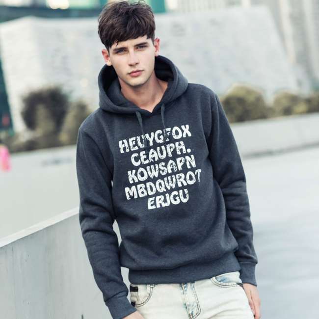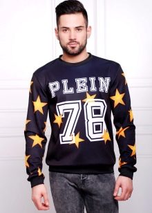 - Γράμματα - η πιο δημοφιλής εκτύπωση σε φούτερ. Πρόσφατα, μοντέλα εξωτερικών ενδυμάτων με διακριτικές επιγραφές σε ξένες γλώσσες - κυρίως στα αγγλικά - έχουν γίνει εξαιρετικά κοινά. Συνήθως, τέτοιες επιγραφές υποδηλώνουν τη δική τους ιδιαίτερη σημασία, την οποία ο άντρας θέλει να τονίσει.