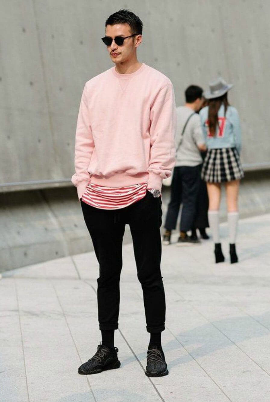 - Μαύρο χρώμα Είναι ένα κλασικό που απηχεί το στυλ του μινιμαλισμού που είναι δημοφιλές σήμερα. Το κύριο πλεονέκτημα του μαύρου είναι ότι είναι εντελώς ευέλικτο, μπορεί να ταιριάζει απόλυτα σε οποιοδήποτε στυλ ρούχων, σε οποιαδήποτε διάθεση και θα είναι σε αρμονία με σχεδόν όλους τους τύπους χρωμάτων. Το κύριο μέλημα ενός άντρα που φορά ένα μαύρο φούτερ είναι να εμποδίσει το σκούρο μπλε ή καφέ παντελόνι να δημιουργήσει μια ζοφερή εμφάνιση. Είτε ένα τελείως μαύρο τόξο, είτε ένα τόξο στο οποίο το μαύρο δημιουργεί μια ευχάριστη αντίθεση με ένα ελαφρύτερο ρούχο, θα φαίνονται καλύτερα. Και επίσης το μαύρο χρώμα τονίζει τέλεια το σχήμα και μπορεί να το διορθώσει.