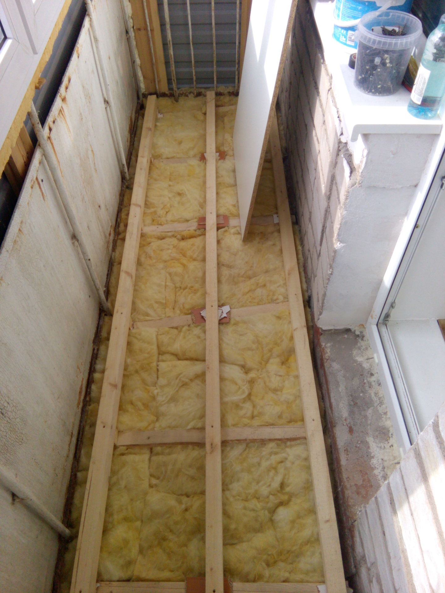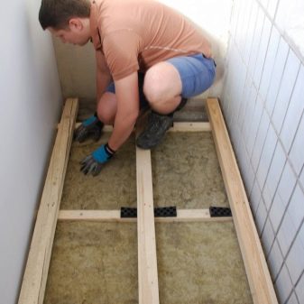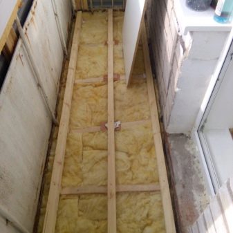 Για να μονώσετε σωστά το μπαλκόνι από μέσα με τα χέρια σας, πρέπει να αποφασίσετε εάν πρέπει να ισοπεδώσετε τη βάση ή όχι. Δεν υπάρχει ανάγκη για μια τέτοια διαδικασία εάν σκοπεύετε να εγκαταστήσετε ένα ζεστό δάπεδο. Το μονωτικό υλικό τοποθετείται στα διαστήματα μεταξύ των υστερήσεων. Μια προσανατολισμένη πλάκα βιδώνεται στα ίδια κορμούς (χρησιμοποιώντας βίδες αυτοεπιπεδώματος). Με τη σειρά του, σχηματίζεται τσιμεντοκονία και τσιμέντο στο OSB. αυτό το γέμισμα γίνεται με ένα στρώμα όχι λεπτότερο από 5 cm και η δομή πρέπει να κοπεί σε ένα επίπεδο.