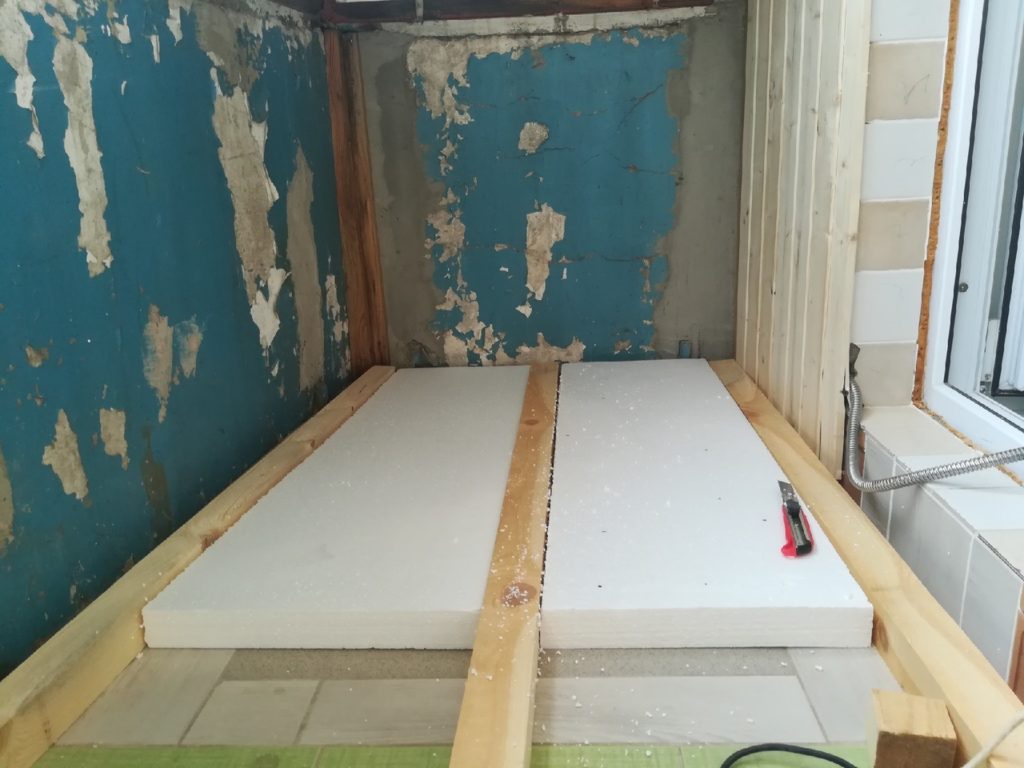 Τα κούτσουρα πρέπει να έχουν τέτοιο πάχος ώστε το πάτωμα στο χαγιάτι να έχει το ίδιο ύψος με τα δάπεδα στο διαμέρισμα. Ένα κενό αέρα ακριβώς 1 cm πρέπει να παραμείνει από το δάπεδο στο στρώμα φραγμού ατμών. Όταν ολοκληρωθούν αυτές οι εργασίες, μπορείτε να προχωρήσετε στην εργασία με τον τοίχο και την οροφή.
