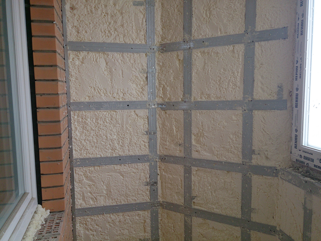 Κατά τη μόνωση των εργασιών σε λότζες και μπαλκόνια, είναι επιτακτική η επίτευξη δομικής αντοχής. Η απόσταση των ραφιών καθορίζεται από το πλάτος του θερμομονωτικού. Ο αφρός πρέπει να καλύπτεται επιπλέον με φράγμα ατμών. Εάν οι τοίχοι είναι κατασκευασμένοι από φύλλο με προφίλ, μπορείτε να χρησιμοποιήσετε αφρό πολυουρεθάνης, ο οποίος ψεκάζεται πιο σωστά και δεν είναι τοποθετημένος με τη μορφή πλακών. Αλλά το ορυκτοβάμβακα ή το μαλλί βασάλτη θεωρείται επίσης μια καλή επιλογή.