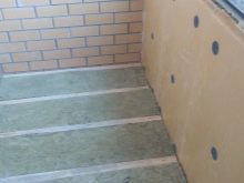 - Συνιστάται η κάλυψη του δαπέδου με ποιοτικό υλικό φραγμού ατμών. Όλες οι αρθρώσεις του δαπέδου με τους τοίχους πρέπει να είναι επικαλυμμένες με στεγανωτικό ή σφραγισμένες με μεταλλική ταινία. Ομοίως, το μπαλκόνι και ο παρακείμενος τοίχος θα απομονωθούν εντελώς από δυσμενείς εξωτερικούς παράγοντες. Μόνο μετά από αυτό μπορείτε να προχωρήσετε απευθείας στη διάταξη του θερμαινόμενου δαπέδου.