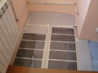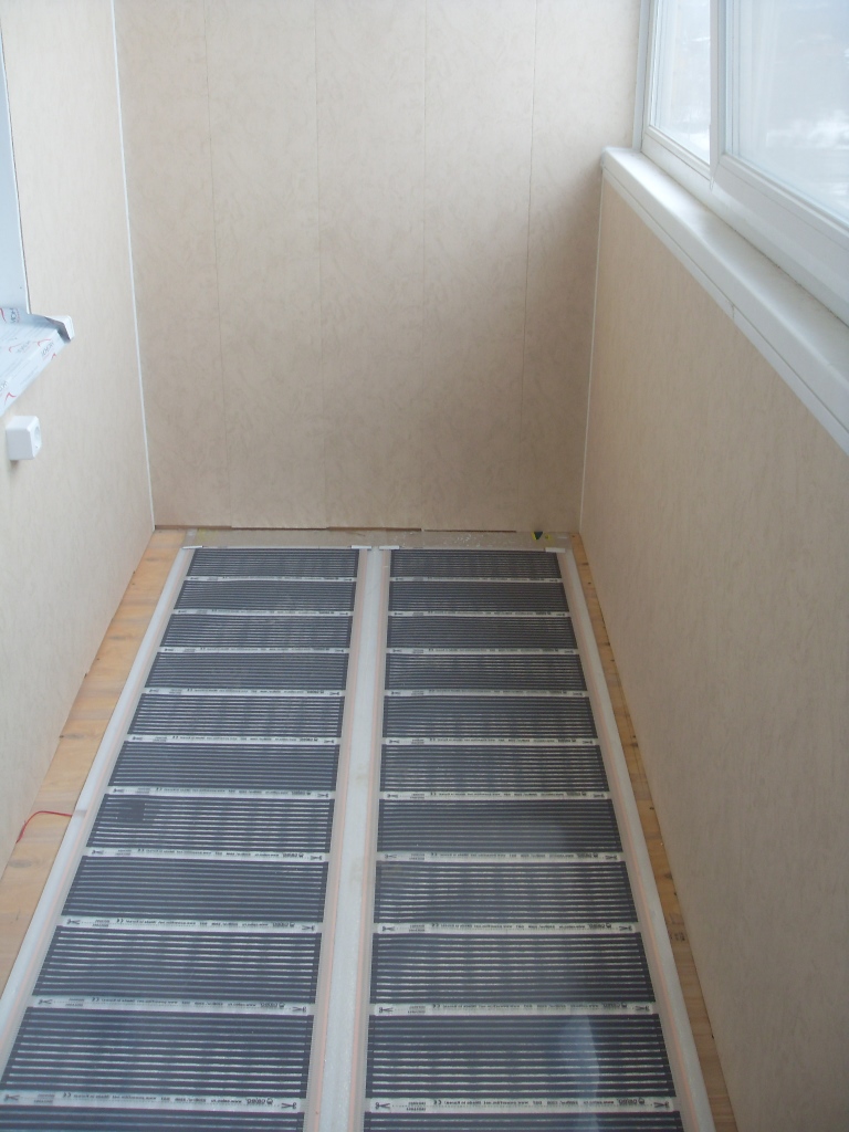 Τα τελευταία χρόνια, η υπέρυθρη ακτινοβολία έχει ζητηθεί ευρέως για τη θέρμανση των λότζια. Η πιο λεπτή μεμβράνη με ταινίες γραφίτη και αγωγούς χρησιμοποιείται εδώ ως βασικό στοιχείο θέρμανσης, ένα ηλεκτρικό ρεύμα ρέει μέσω του θερμοστάτη σε αυτά. Το κύριο πλεονέκτημα ενός τέτοιου δαπέδου είναι η ενεργειακή του απόδοση και η ευκολία εγκατάστασης. Τα μειονεκτήματα περιλαμβάνουν το υψηλό κόστος εργασίας και εξοπλισμού. Αυτός είναι ο λόγος για τον οποίο οι ειδικοί συνιστούν τη χρήση αυτής της τεχνικής για μπαλκόνια και λότζες.