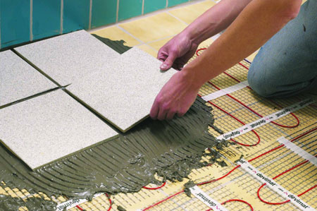 Το καλώδιο στερεώνεται με τον ίδιο τρόπο όπως οι σωλήνες νερού. Στη ζώνη κάμψης, στερεώνεται με σφιγκτήρες. Μια τσιμεντένια επίστρωση χύνεται από πάνω και τα πλακάκια τοποθετούνται.