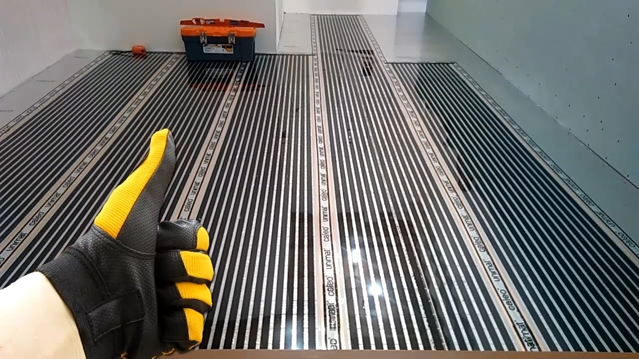 Αυτή είναι η απλούστερη τεχνική και διαρκεί μόνο μερικές ώρες. Πριν από την τοποθέτηση της υπέρυθρης μεμβράνης, ένα στρώμα θερμομονωτικού υλικού καλύπτεται με ένα φύλλο πολυμερούς αφρού, τοποθετημένο στην κορυφή του φύλλου και οι αρμοί είναι κολλημένοι με μεταλλική ταινία. Όλες οι επαφές και οι αισθητήρες πρέπει να είναι στο ίδιο επίπεδο με το πάτωμα, οπότε σχηματίζονται μικρά κοιλώματα κάτω από αυτά στη μόνωση.