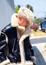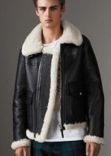 Ένα σκούρο παλτό-βομβαρδιστικό από δέρμα προβάτου με λευκή επένδυση στο γιακά και τα μανίκια φαίνεται όμορφο. Αναζωογονεί το πρόσωπο και χρησιμεύει ως θεαματική διακόσμηση για αυτό το βάναυσο εξωτερικό ρούχο, απαλύνοντας λίγο το βλέμμα. Το κύριο πράγμα είναι να παρακολουθείτε την καθαριότητα των ελαφρών διακοσμητικών γούνας και να το φροντίζετε τακτικά.