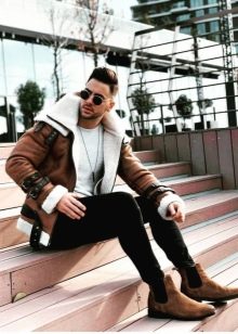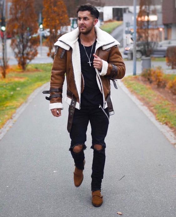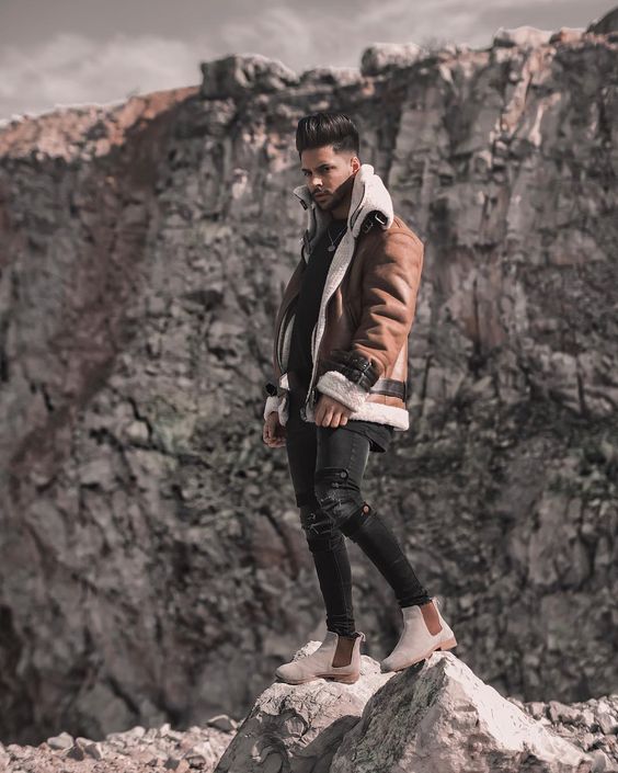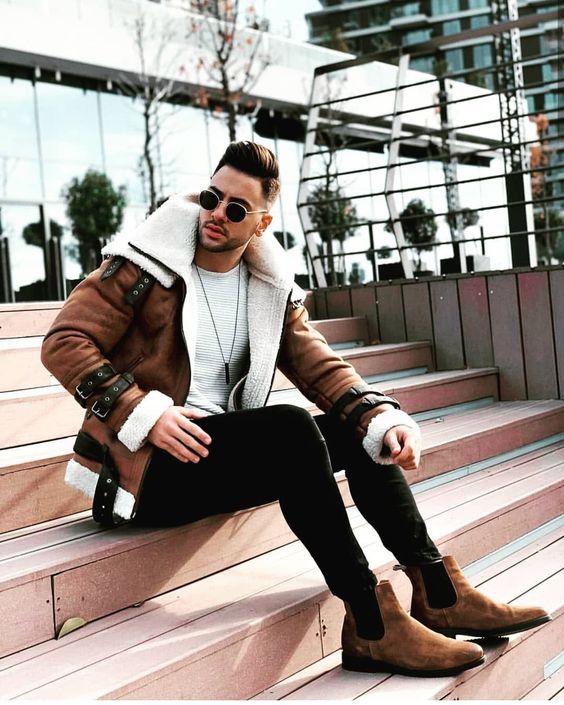 Ένας χειμερινός αεροπόρος και ένα μαύρο skinny τζιν είναι μια εξαιρετική φόρμουλα για να έχετε στο οπλοστάσιό σας. Προσθέστε μια πινελιά κλάσης σε αυτό το look με καφέ σουέντ τσέλσι μπότες. Σήμερα, τα μαυρισμένα σακάκια και τα μαύρα τσινό έχουν γίνει επίσης κλασικά για τους νέους άνδρες. Τα μαύρα παπούτσια Chelsea σας δίνουν μια εξαιρετική και στιλάτη εμφάνιση.