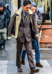Το στενό παντελόνι και ένα μπουφάν μπόμπιρ από δέρμα προβάτου με ένα κομψό γιακά φαίνονται καλά μαζί. Σε κακές καιρικές συνθήκες, το κολάρο στερεώνεται εύκολα με ιμάντες. Έχοντας φορέσει ένα τέτοιο σακάκι, μπορείτε να το κάνετε χωρίς κασκόλ.