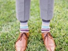 Many young people wear socks to match the shoes or trousers; here it is important that the elastic is not visible from under the edge of the leg. You can also opt out of high-rise socks and opt for those that are not visible at all. If you want to stand out from the crowd, then bright socks with an unusual print are for you, but here it is important to take into account the general style of the image so that they really fit everything and do not look like a bright ridiculous spot.