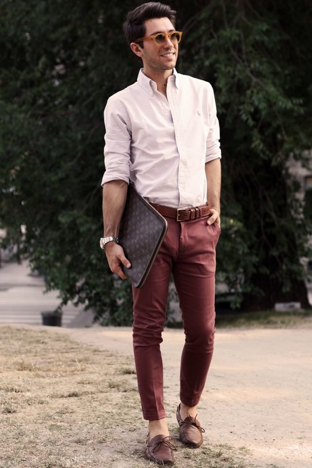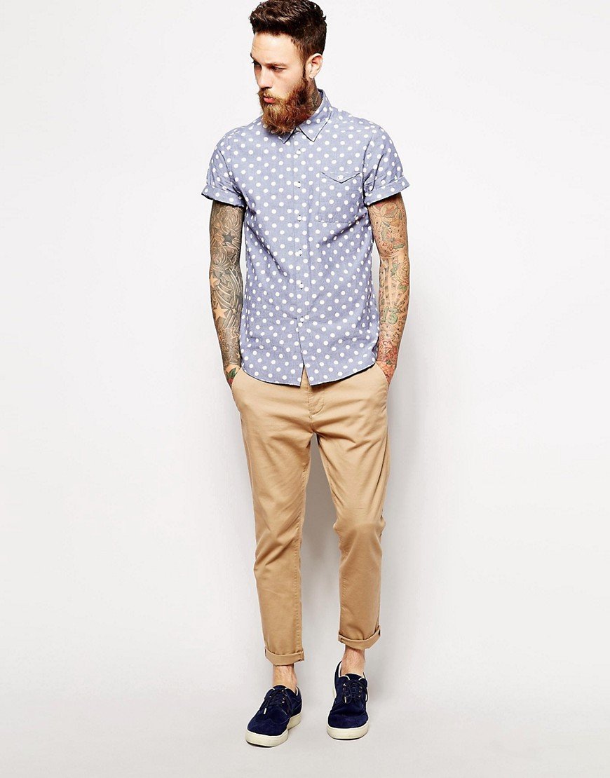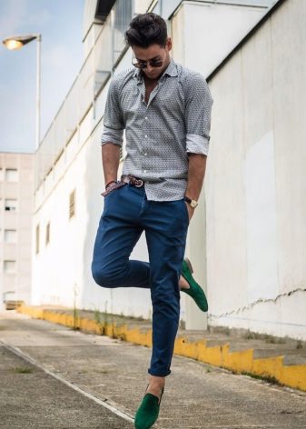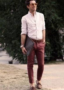 If a man chooses shot trousers (they are also sometimes called that) for everyday wear, he can give preference to any style of chinos: from strict and straight to those with a low waist and narrowed down.