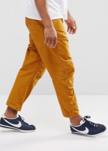 Pants of this length were once worn by the American and British military, and only two fabric colors were used for sewing: beige and khaki. Now the palette of shades has expanded, and the style has become available to any man who wants to emphasize his style.