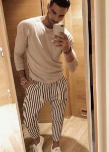 It should be recalled that cropped trousers will ideally sit on a slender and fit body, they will be able to favorably emphasize all the beauty of the male figure. Moreover, choosing a similar item of clothing, the stronger sex, as it were, emphasizes the fact that they can understand the latest fashion trends as well as women.