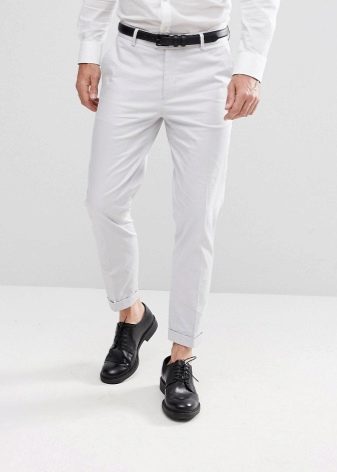 The choice of this or that type of cropped pants is certainly influenced by the reason why the man puts them on. For example, if he needs a stylish office suit, then it is better to give preference to straight trousers, which can be decorated with arrows, which will give even more working mood. The same option is suitable for any official event.