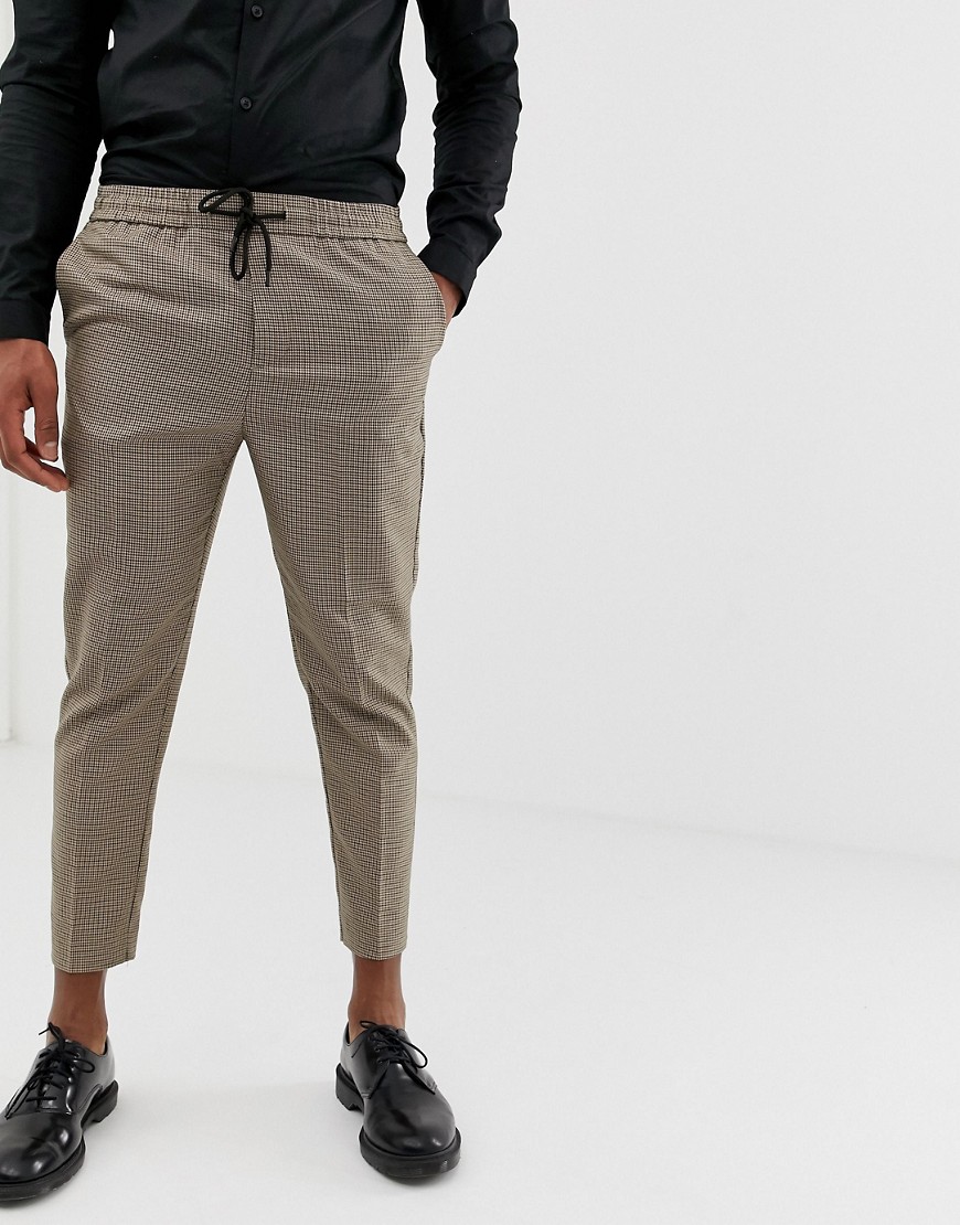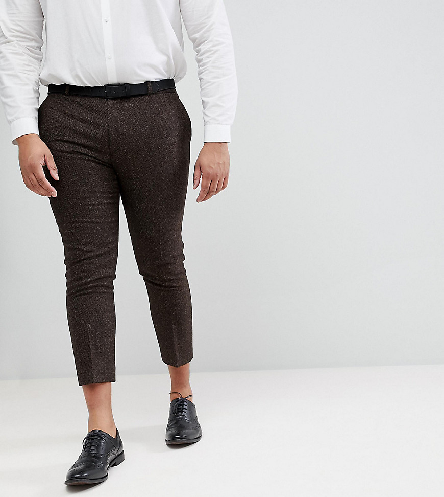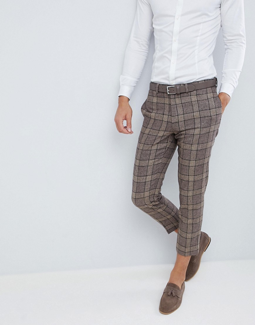 Depending on the model of trousers, this may look pretty good, but do not overdo it with the slim style - it is very likely that you will turn into a chubby man with short legs.