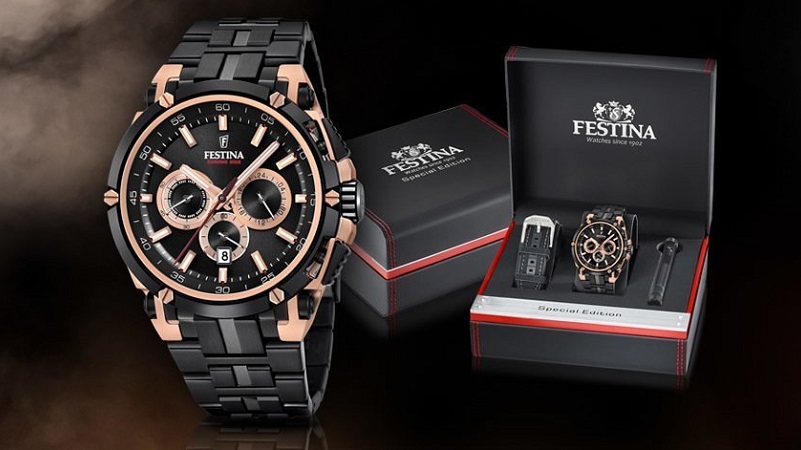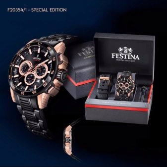For the production of chronometers, the Festina brand uses steel and titanium. Sapphire crystal provides reliable protection of the watch from mechanical damage. Surgical steel it is resistant to rust and scratches, does not cause allergic reactions. There are models with a choice of rubber, ceramic, gold, titanium bracelets... Used as decorative inserts Swarovski crystals.