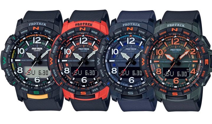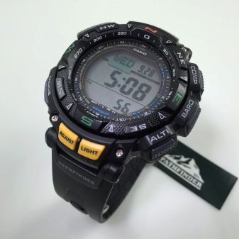 - Pro Trek PRT-B50-2ER. The watch for climbers and skiers in 2019 received an additional set of options, now they have a pedometer, a digital Quad Sensor sensor with fixing altitude, ascent speed and altitude points of relief. There is a Bluetooth module, GPS navigation and the ability to work at low atmospheric temperatures without interruptions. Stylish design and comfortable fabric strap make this watch a must-have for true extreme lovers.